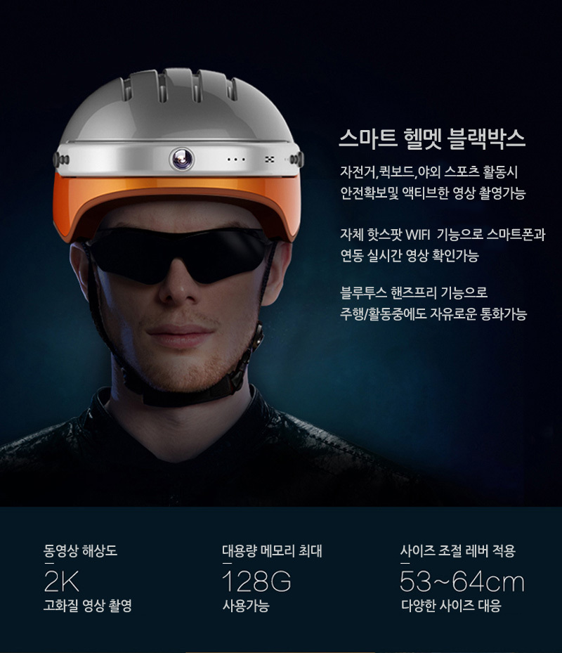 블랙박스+핸즈프리+블루투스 헤드셋 내장 스마트 헬멧입니다.