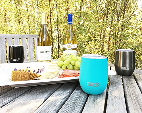Double-wall vacuum insulated stainless steel keeps drinks cold for hours. Can also be used for hot drinks.