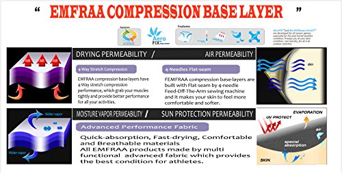 4-Needles Flat-seam - EMFRAA compression base-layers are built with Flat-seam by 4-needle Feed-Off-The-Arm sewing machine and it makes your skin to feel more comfortable and softer. 4-Way Stretch Compression - EMFRAA compression base-layers have 4-Way stretch compression performance, which grab your muscles tightly and provide better performance for all your activities.