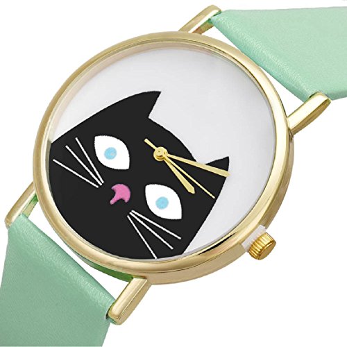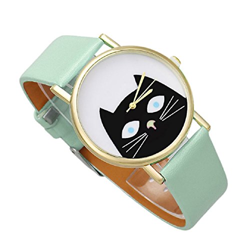 -. Title : Sandistore Cat Women Men PU Leather Band Analog Quartz Dial Wrist Watch(Green)