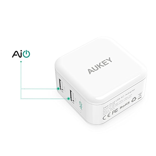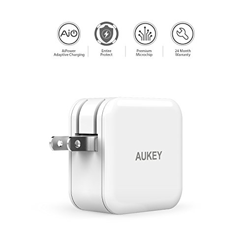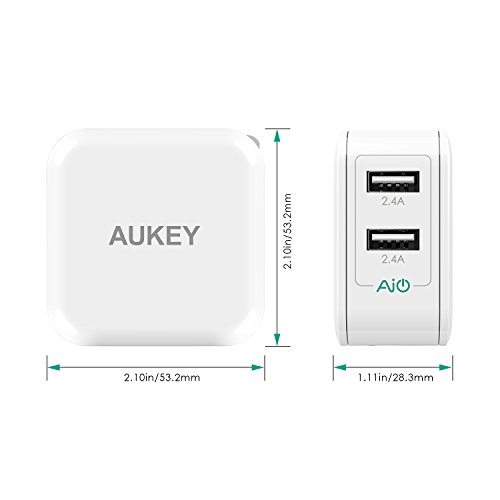 -. Title : AUKEY Dual Port USB Wall Charger with AiPower Technology & Foldable Plug for iPhone and more