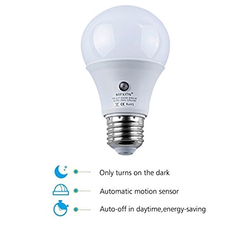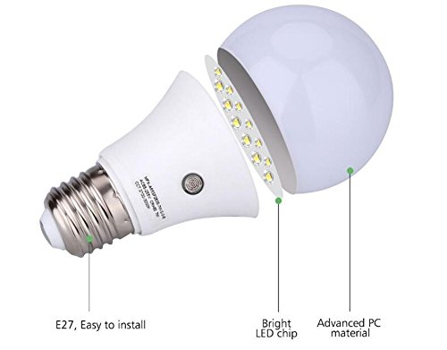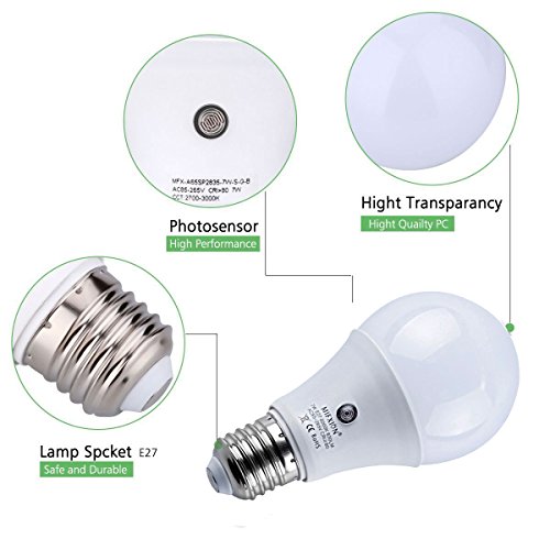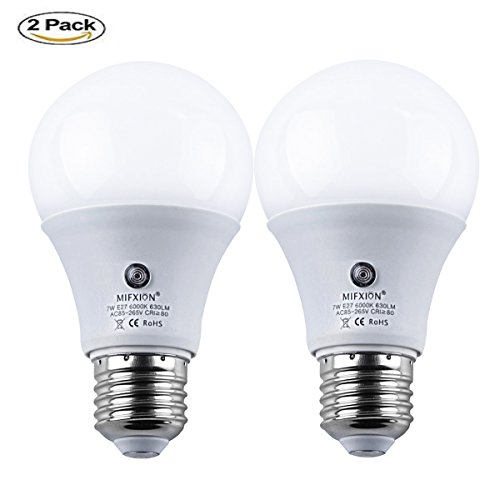 2Pcs E27 6000K LED Dusk to Dawn Sensor Light Bulbs Built-in Photosensor Detection Auto Switch Light Indoor/Outdoor Lighting Lamp (7)W-Cool White