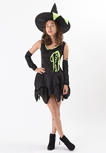 お馴染みのブラックの魔女ドレスにリボンのライン☆ とってもキュートなコスチュームです♪