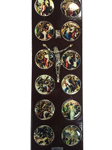 Valentine Day Special Present, Rectangle Stations of The Cross SMALL, Wall Crosses For The Home, Wall Hanging Cross, Brown Color Size 10 X 3 Inch
