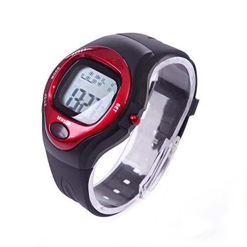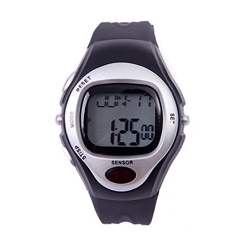 -. Binding : Misc. -. Brand : HDE -. Feature : Chronograph (Stopwatch) with split lap time for recording exercise time / Built-in pulse sensor provides accurate heart rate requiring NO chest strap! / Exercise intensity input analyzes calories burned / Display current time and calendar with alarm and hourly chime function / Soft silicone band with adjustable strap fits comfortably around your wrist during workouts -. Label : HDE -. Manufacturer : HDE -. ProductGroup : Sports -. ProductTypeName : SPORTING_GOODS -. Publisher : HDE -. Studio : HDE -. Title : HDE Fitness Sport Pulse Sensor Watch with Heart Rate Monitor and Calorie Counter