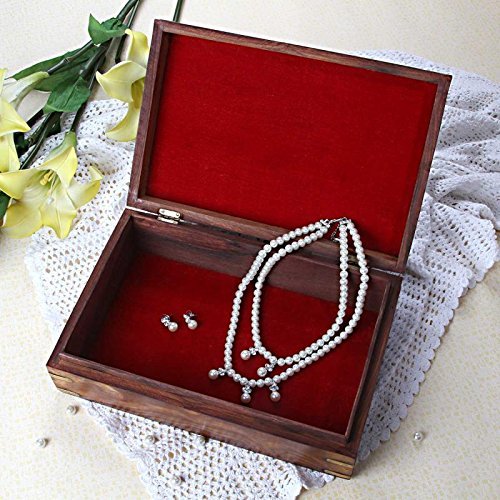 Valentine Day Special Present, Wooden Carving Brass Earring Box, Jewelry Storage box, Jewelry Organizer Box, Brown Color Size 10 X 6 inch
