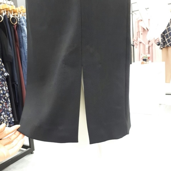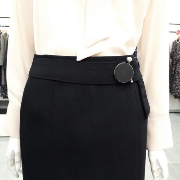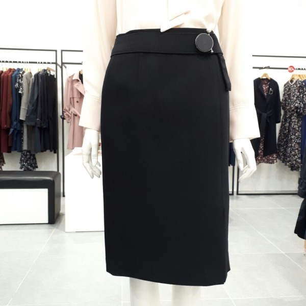 H라인 기본스커트에 벨트가 같이 나왔네요기장이 좀 길게 나왔구요스판성도 좋고 옆트임이라서 활동하시기에 불편함은 없어요신상품인데 가격이 많이 인하됐네요
