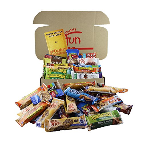 - Bundle Includes: 2 Kind Bars – 1.4 oz, 2 Cliff Bar – 2.4 oz, 6 Nutri Grain – 1.3 oz, 2 Kashi Bars – 1.2 oz, 6 Quaker Chewy Bar – 0.84 oz, 6 Nature Valley Trail Mix – 1.2 oz, 6 Nature Valley Sweet & Salty – 1.2 oz, 6 Fiber One Bar – 1.4 oz, 4 Nature Valley Granola Crunchy – 1.49 oz, 3 Natures Fig Bar – 2 oz, 2 Fiber One Brownie – 0.89 oz, & 5 Planters Peanuts – 1 oz