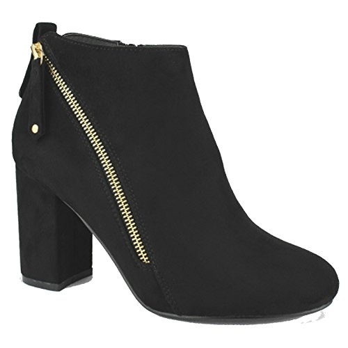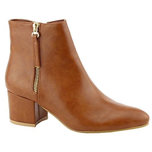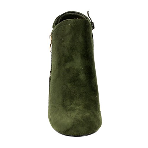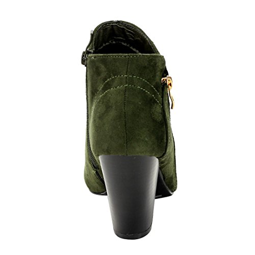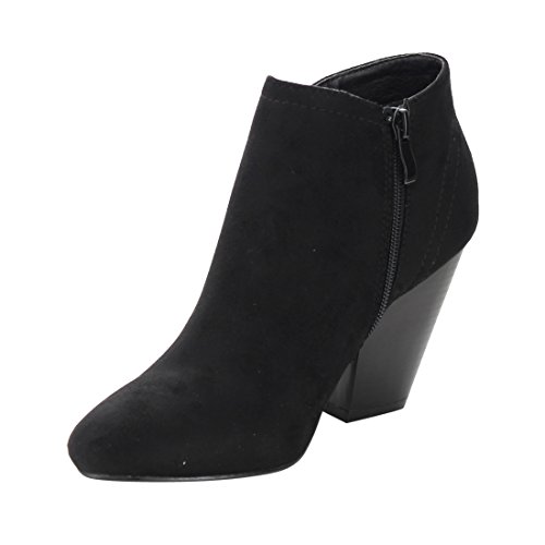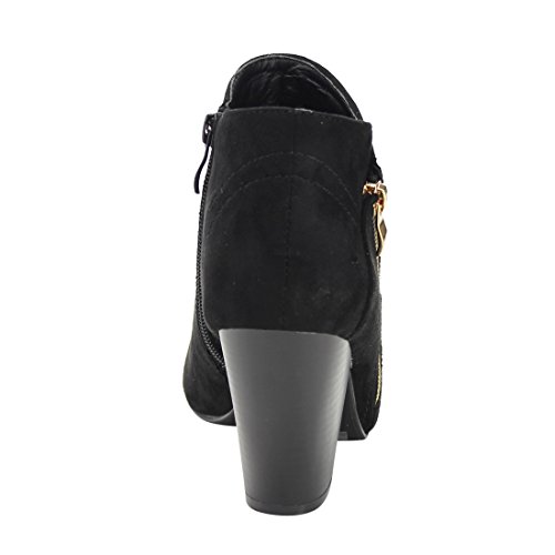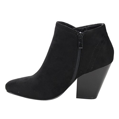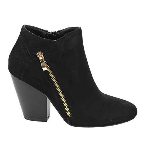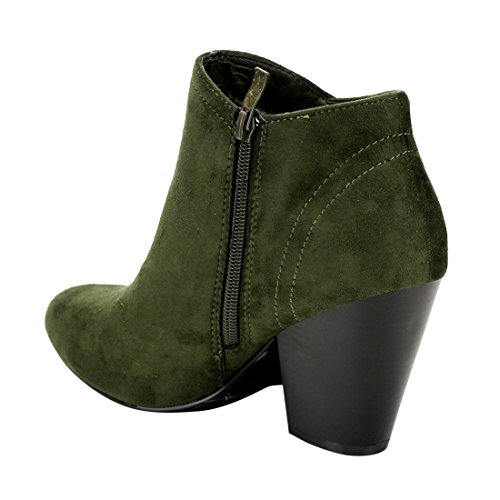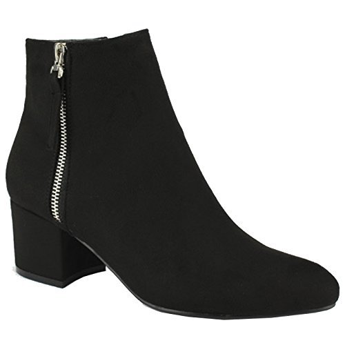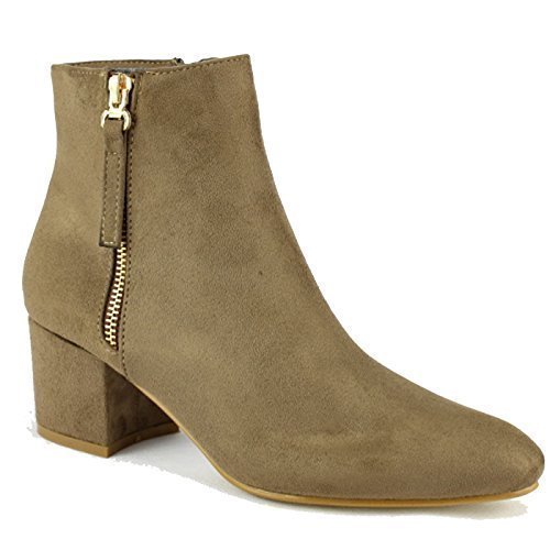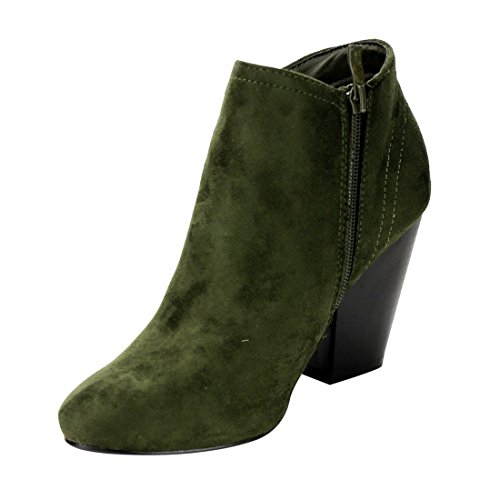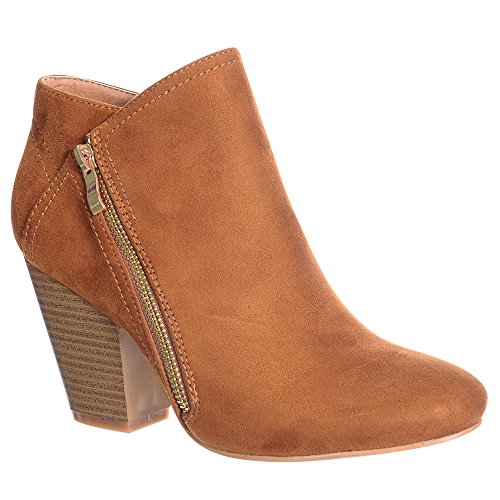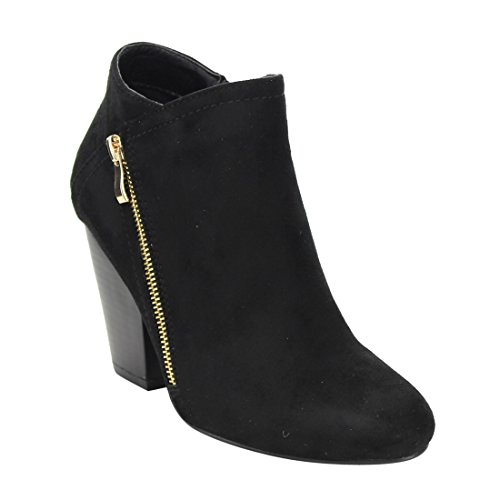 | Nature Breeze FF47 Women's Metallic Zip Stacked Block Heel Ankle Booties |