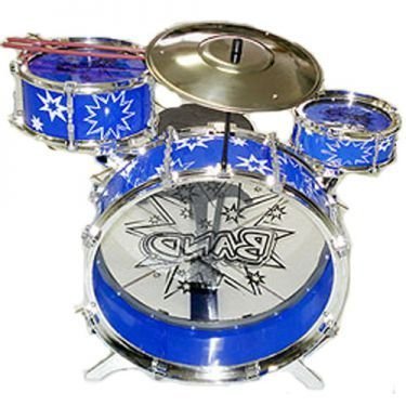 -. Feature : 8 Piece Big Band Drum Set (Assorted Colors) / Made of Durable Plastic / Includes: 1 Bass Drum, 1 Large Drum, 1 Small Drum, 1 Cymbal, 2 Drum Sticks, 1 Foot Pedal, 1 Chair / Realistic Sounds; Easy to Assemble / Bass Drum size: 12" Diameter, Chair size: 8"