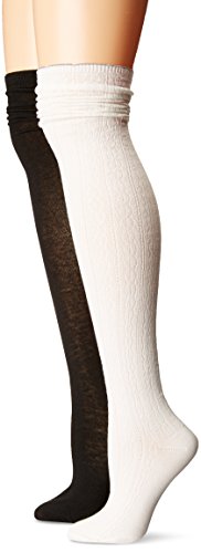 Studio : Steve Madden Women's Socks/Hosiery Publisher : Steve Madden Women's Socks/Hosiery Binding : Apparel Product Description Steve Madden 2 pack over the knee with scallop cuff cable front sock and solid flat knit second pair. Off white with black combination. 0