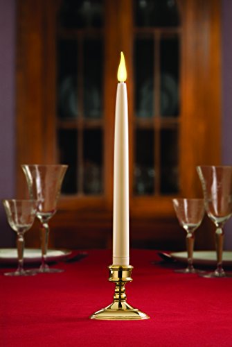- Flameless Ivory 12 inch taper candle with flexible base that works with a wide variety of candle holders