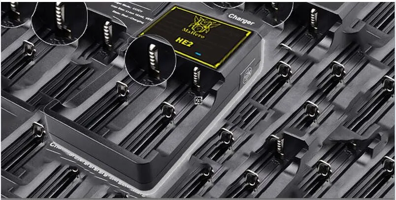 Slidable charging plug:the track of sliding thicken the gleithretter, easy to pull and uneasy to out of shape(Using the sliding design that made by 304 stainless steel, maximized decrease the contacted resistance of charger's negative, make the battery charging voltage more precise and less heat. And at the same time it's more fluent when put into the battery, and can charge more types of round lithium battery one time)