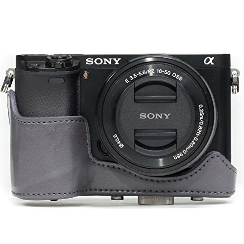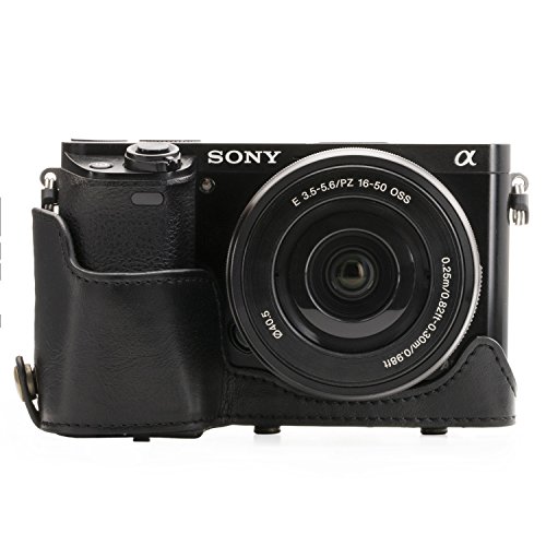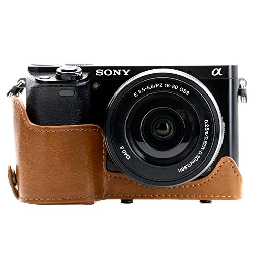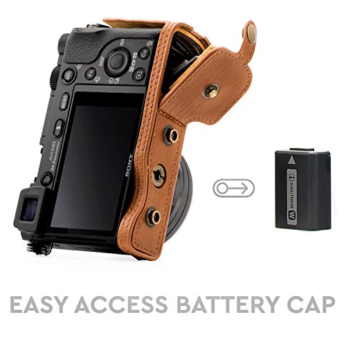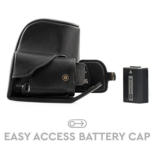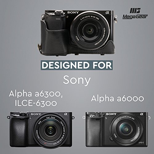 MegaGear Immer bereit Sony Leder Kameratasche - Einfach zu Installieren, Stativ und peripheren Freundlich Zubehor - Kompatibel mit Sony Alpha A6000, A6300 mit 16-50mm