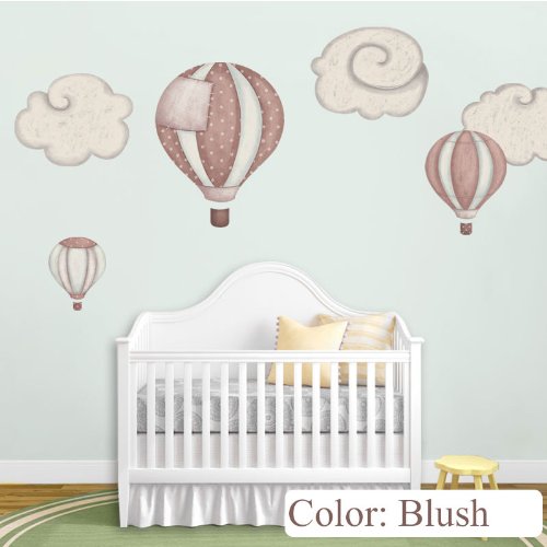 My Wonderful Walls Hot Air Balloon Decals and Cloud Wall Stickers for Baby Room Nursery, Blush