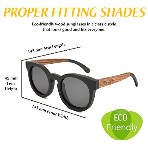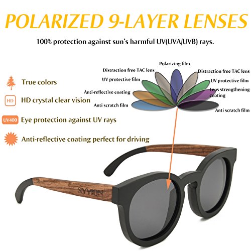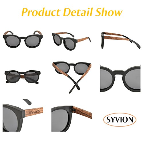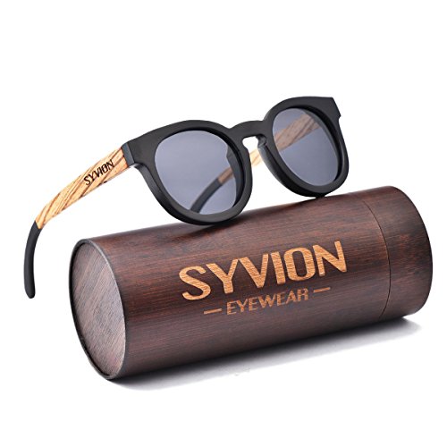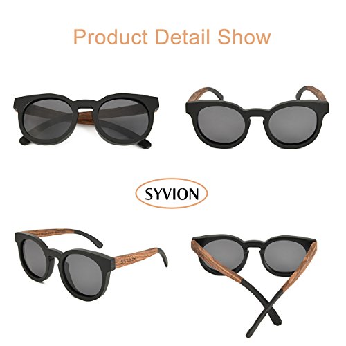 Product Description SYVION WOODEN SUNGLASSES Feature: -Our sunglasses are hand crafted with organic wood for a unique design that looks and feels great. -The lightweight Zebra/Ebony Wood offers a comfortable fit that is durable and sturdy at the same time. -Our unique stainless-steel, double-spring hinges are sturdy and designed to keep their shape year after year. -30-Day Money back Guarantee. Package Content: -1 X Zebra/Ebony Wood Polarized Sunglasses -1 X Microfiber Pouch -1 X Bamboo Case -1 X Polarized Test Card -1 X Mini Screwdriver Good wood gift Due to the type of the material used and the handmade production process, each pair of wooden sunglasses is unique. With bamboo case ,This makes the product a very good wood gift , PERFECT GIFT FOR YOURSELF OR THAT SPECIAL SOMEONE. 0