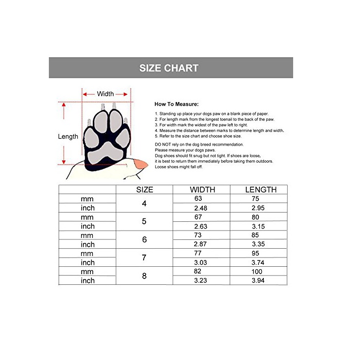 당신의견을 서게 하고, 당신의견의 발을 종이의 공백의 부분으로 둡니다.최장의 발바닥부터 발의 뒤까지의 길이의 마크.소의 폭은 왼쪽에서 오른쪽의 발의 가장 넓은 곳을 가리킨다.발의 폭을 측정해 최적으로 피트 시킨다.애완동물 부츠 의 열매옆의 사이즈와 사이즈의 그림을 참조하고, 당신의견에게 최적인 사이즈를 선택해 하십시오.