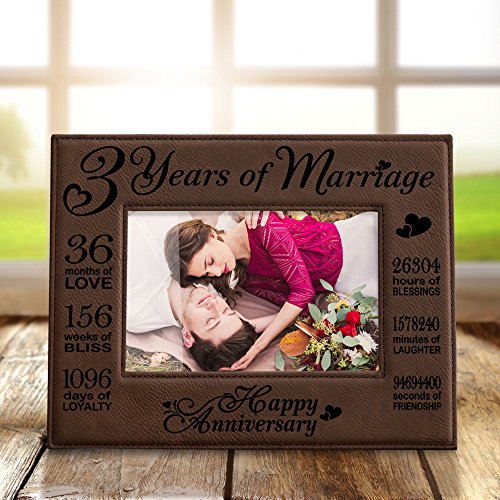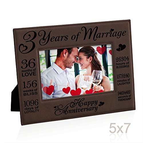 Kate Posh - Our 3rd Wedding Anniversary, 3rd Anniversary Gifts, 3 Years Anniversary, 3 Years of Marriage, Gifts for Couple, Third Anniversary - Engraved Leather Picture Frame (5x7 Horizontal)