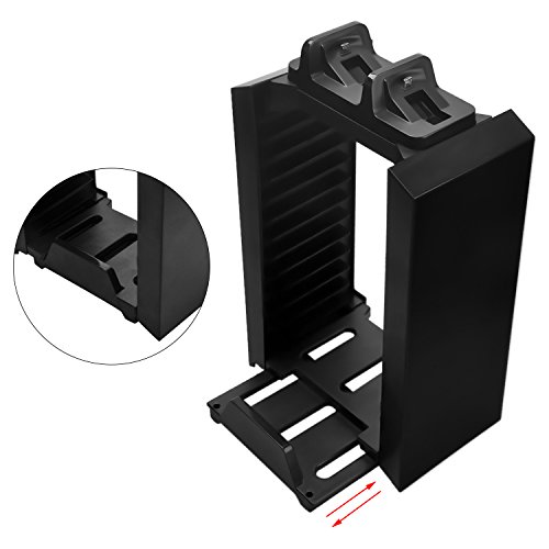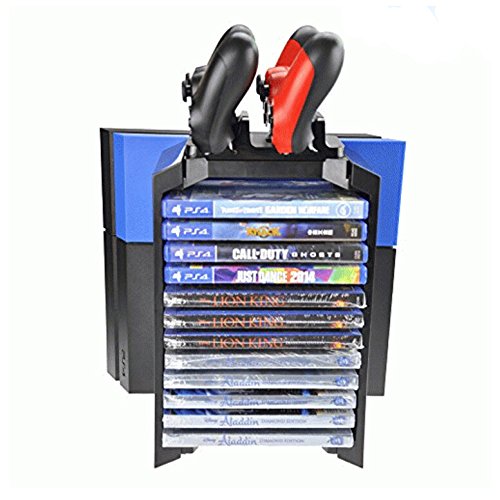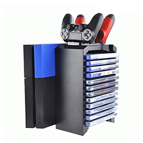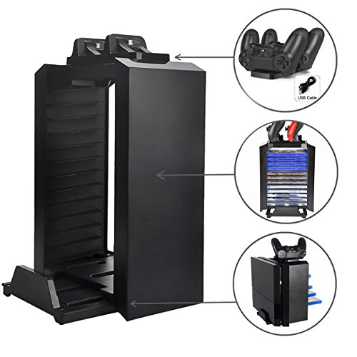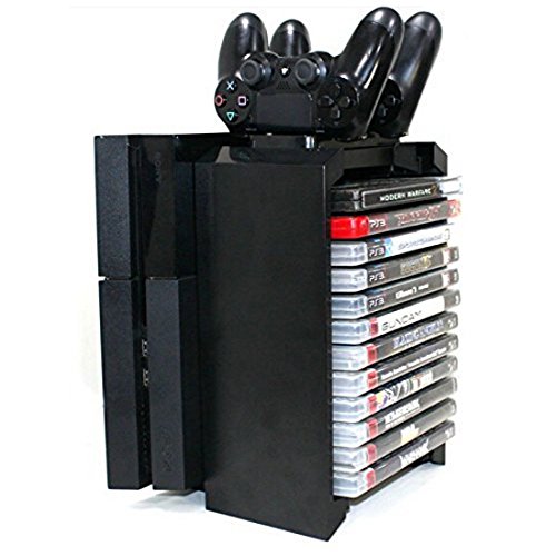 Description This is the ultimate gaming peripherals for PS4! With this Games Tower & Dual Charger for PlayStation 4 you can store your PS4 games or Blu-Ray movies (up to 12), with a handy charging dock for your official Dual shock controllers on top! And best of all - you can even detach the charging part so that you can have it even closer to your PS4!