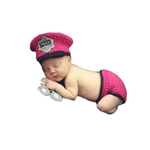 -. Title : Shinestar Baby Photography Prop Crochet Knit Policeman Hat Diaper Costume Outfit Set