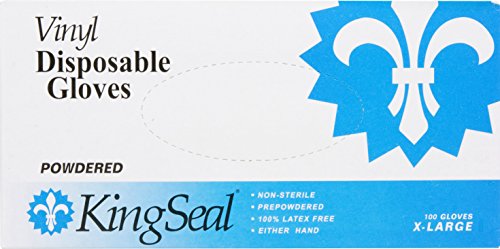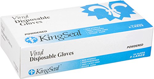 KingSeal Vinyl Disposable Gloves, Powdered, 4 mil, Clear, Large, 10 bx/100 per Case