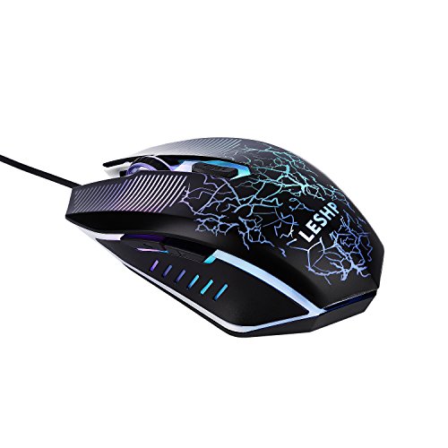 Gaming Mouse,LESHP Ergonomic USB Wired Gaming Mouse Mice with 2400DPI Adjustable High Precision 6 Button LED Optical for Laptop PC Computer Gamer