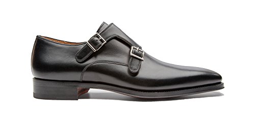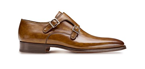 -. Feature : Burnished-leather oxford with marbled finish featuring double monk straps with buckle closures