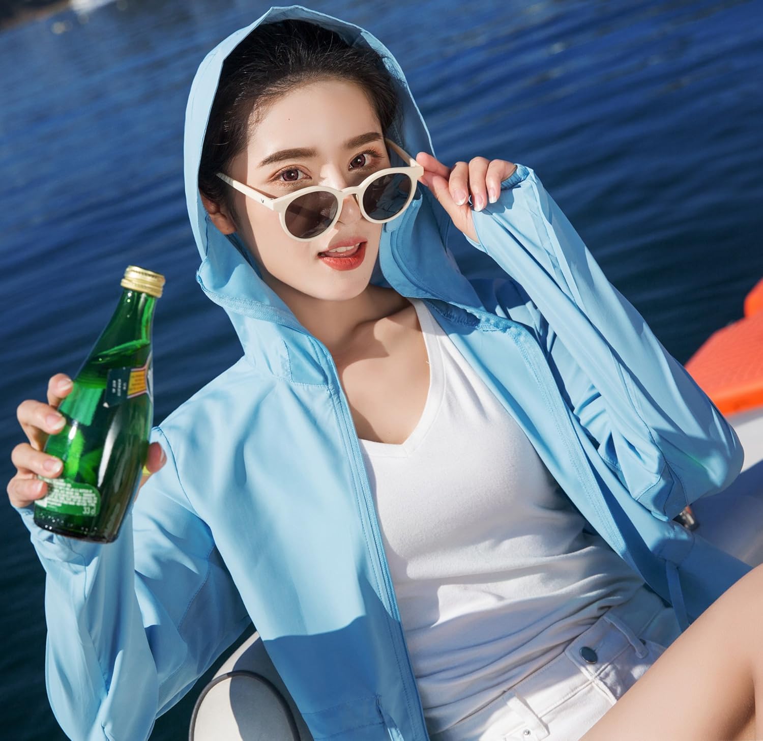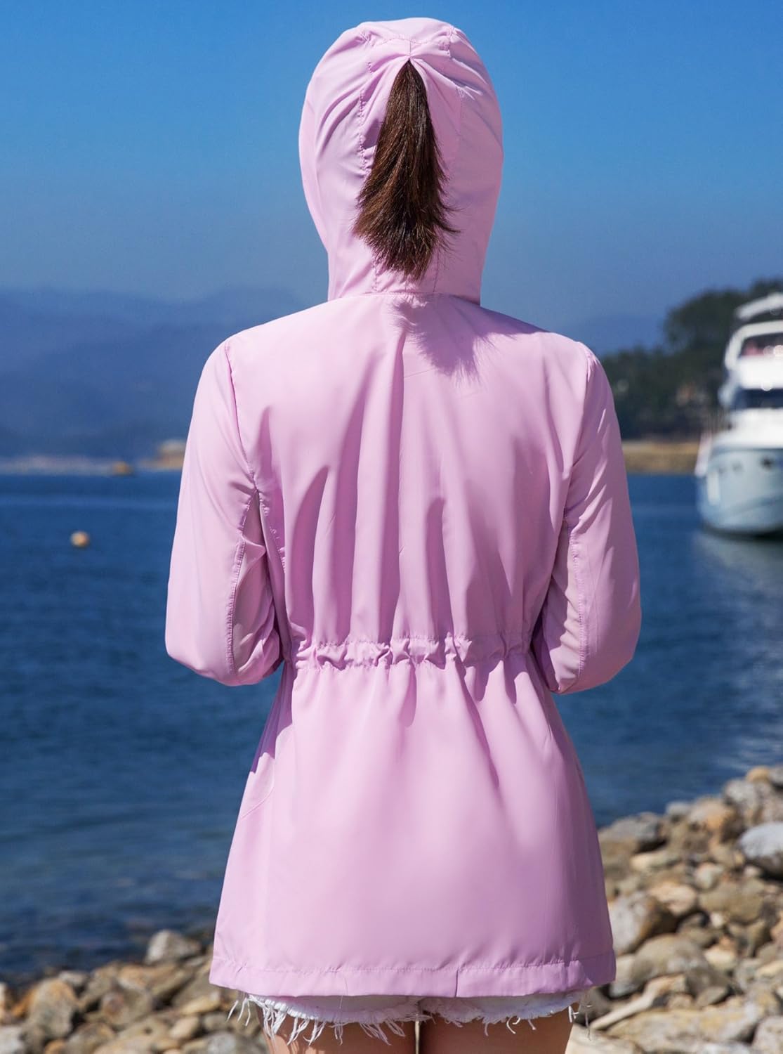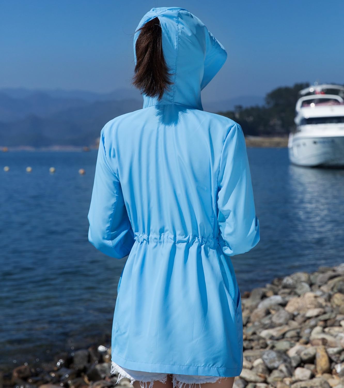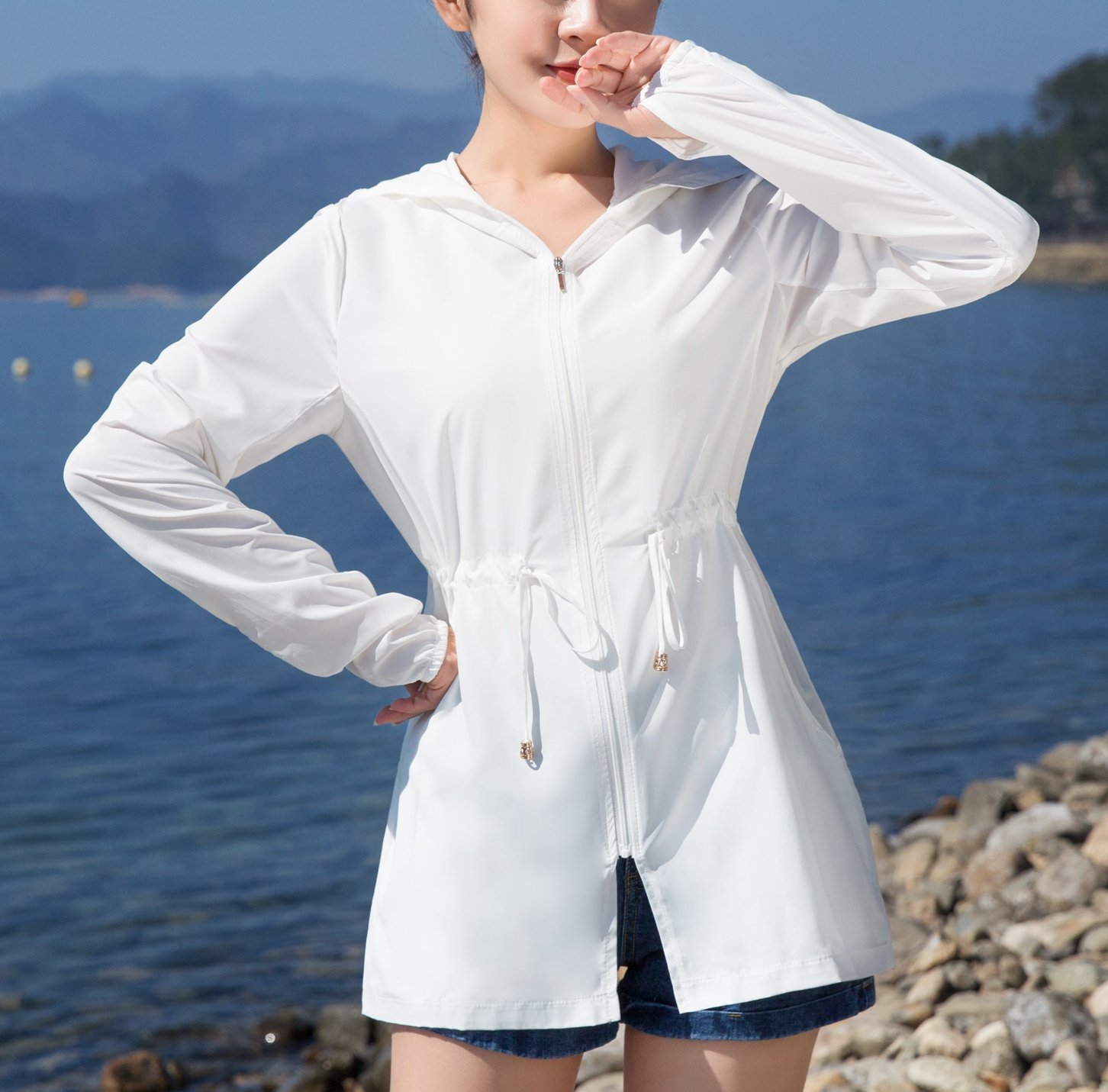 - フード付き(フードをかぶれば首や頭皮の日焼けもしっかりカバーしてくれます。フードの後ろにファスナーもついているので、ポニーテールを出せます。)