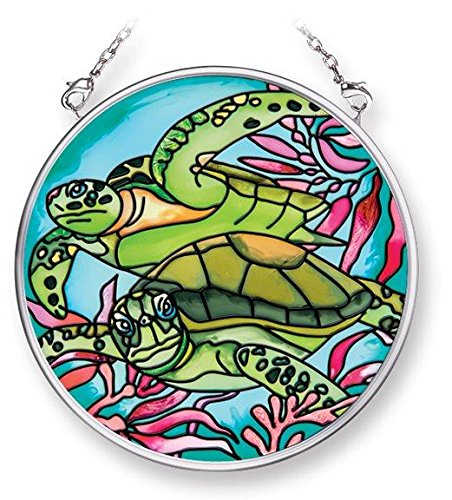 Amia 42082 3-1/2-Inch Hand Painted Glass Circle Suncatcher, Small, Sea Turtle Design