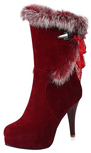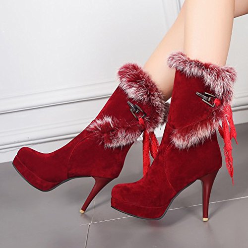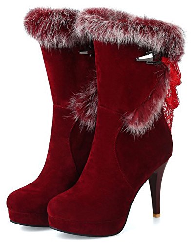 (Mofri)/Women's/Boots/DIRECT FROM USA/Mofri Women's Sexy Faux Suede Fluffy Fur Round Toe High Pointy Heel Platform Lace up Mid Calf B...