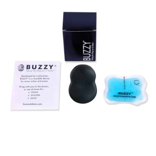-. Feature : RELIEVES SHARP PAIN ON CONTACT - Buzzy is a hand-held device that naturally and quickly minimizes sharp pain from needle sticks like IV starts, blood draws, finger P.R.Icks and immunizations, through a combination of vibration, ice and distraction methods. / AWARD-WINNING FOR PAIN - Buzzy is an award-winning personal pain management device invented by a physician, mom, and pain researcher / Buzzy is reusable, affordable, and effective. / FOR PERSONAL USE ONLY (*see Buzzy Healthcare for non-personal medical use) - Intended for self-administered injections, finger sticks, cosmetic injections and trips to the doctor's office. / FDA-COMPLIANT - Buzzy is FDA-compliant. Buzzy is lead free