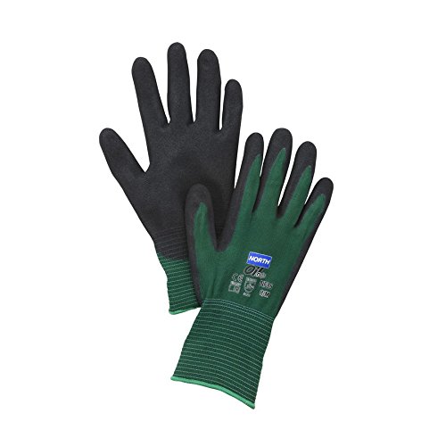 North by Honeywell NF35/8M North Flex Oil-Grip NF35 Foam Nitrile 2-Stage Palm Coated Gloves, 9, Natural Green , 8 (Pack of 12)
