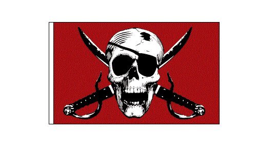 Red Pirate Skull 12 x 18" Bicycle Safety Flag with Rear Axle Mounting Bracket