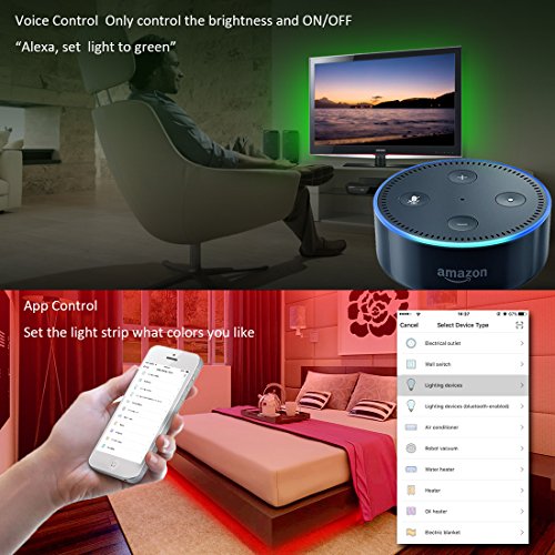 Work with Alexa: Voice control your led light strip by speaking to Amazon Alexa, speak out your demand, control your light strip through voice commands, you can turn on/off, change the color, dim/brighten the light strip.