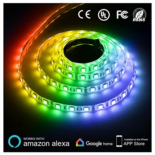 Texsens LED Light Strip, 16.4ft 5m Smart Phone Controlled LightStrip Kit Flexible RGB Rope Lights, 5050 SMD Tape Lighting, Works with Amazon Alexa