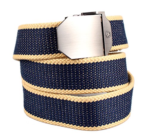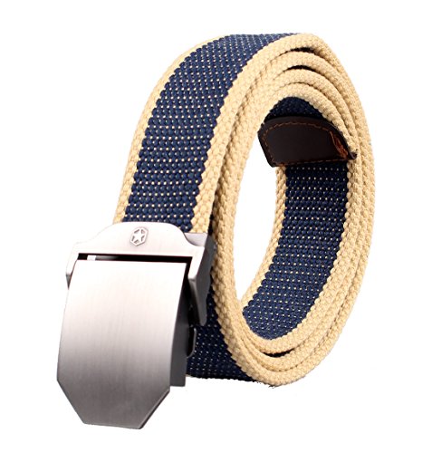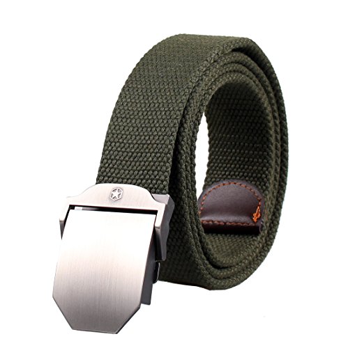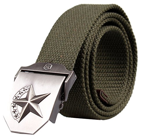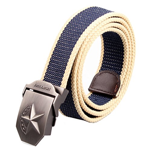 This military style belt is the perfect fit, no matter what your size it is easy and comfortable to wear, the fabric is very thick and won't fray. It's easy to swap buckles and cut belt down to a smaller size if necessary.Many colors and styles,quite suitable for jeans.