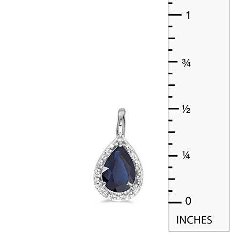 This 14k white gold pear sapphire pendant features a 7x5 mm genuine natural sapphire with a 0.63 ct total weight and bright diamond accents. 18" 14 Karat Gold Chain Included.