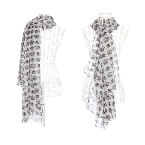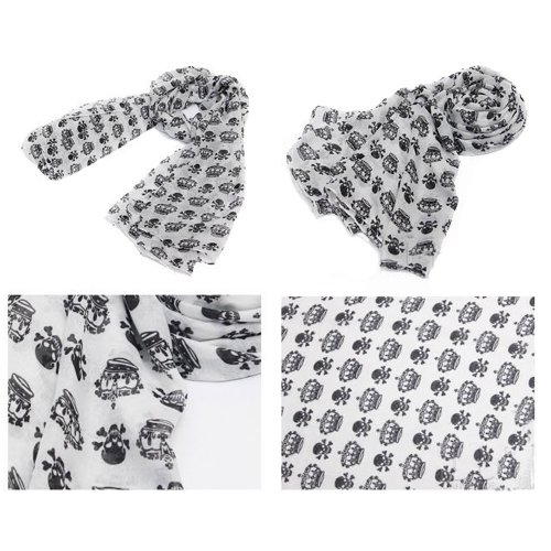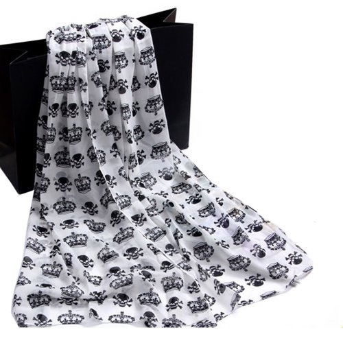 Title : ECOSCO New Arrival Lady Girl Black Skulls Crowns Printed White Long Soft Scarf Shawl Christmas Gifts WITH ONE PC PURSE HOOK