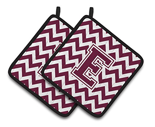 Caroline's Treasures Letter E Chevron Maroon & White Pair of Pot Holders CJ1051-EPTHD, 7.5HX7.5W, Multicolor