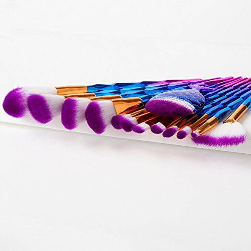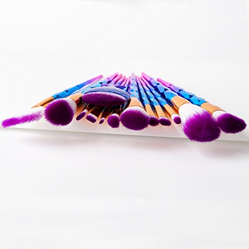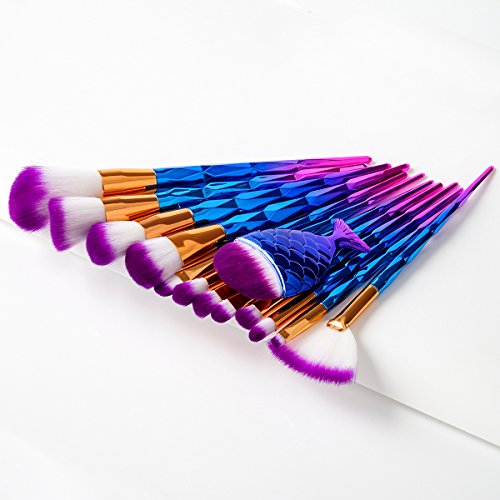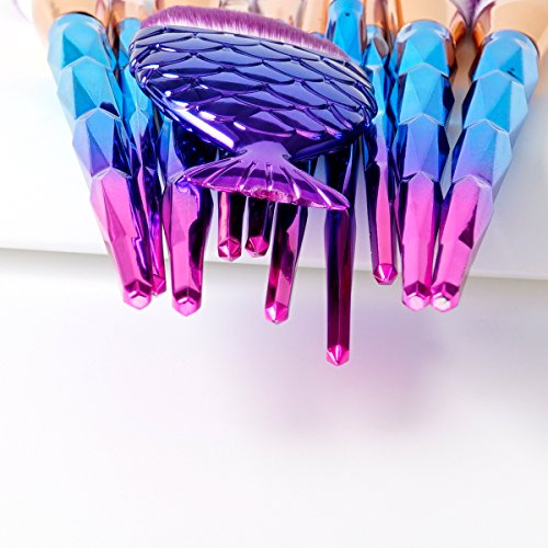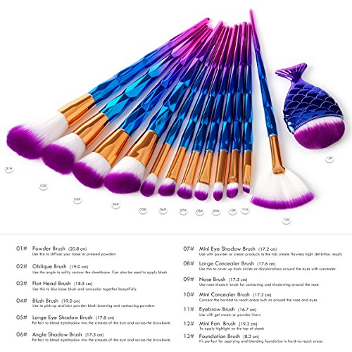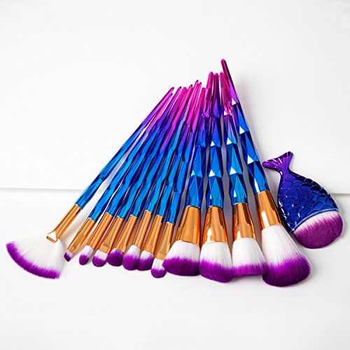 12Pcs Dazzle Diamond Shape Handle Makeup Brush set Professional Face Contour Foundation Blush Powder Fan Brushes Sets + 1pc Mermaid Fish Powder Brush