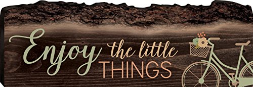 Enjoy the Little Things Bicycle 4 x 12 Wood Bark Edge Design Wall Art Sign