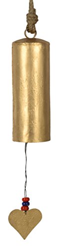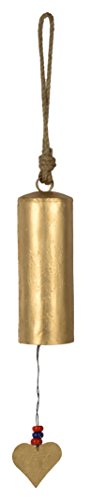 SAAGA Antique Hand Painted Cast Iron Bell / Handmade : 3x3x8 inches (LxBxH) Hanging Length : 25 inches (Gold)