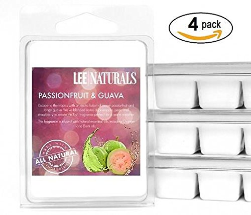 Lee Naturals Summer - (4 Pack) PASSIONFRUIT AND GUAVA Premium All Natural 6-Piece Soy Wax Melts. Hand Poured Naturally Strong Scented Soy Wax Cubes