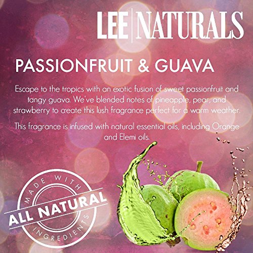 FRAGRANCE DESCRIPTION: Escape to the tropics with an exotic fusion of sweet passionfruit and tangy guava. We've blended notes of pineapple, pear, and strawberry to create this lush fragrance perfect for a warm weather. This fragrance is infused with natural essential oils, including Orange and Elemi oils.