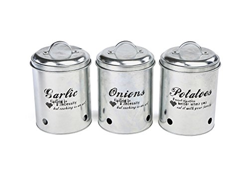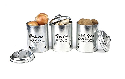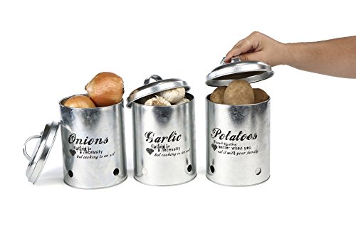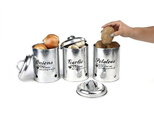Mind Reader 3 Piece Garlic, Onion, Potatoes Metal Canister Set, Silver