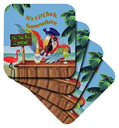 3dRose Pirate Parrot in Paradise - Soft Coasters, Set of 8 (cst_18918_2)