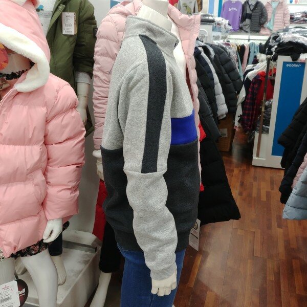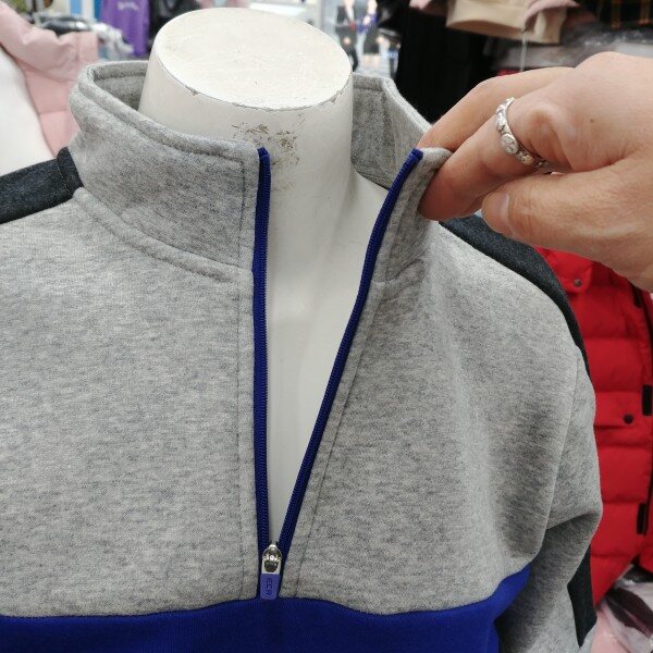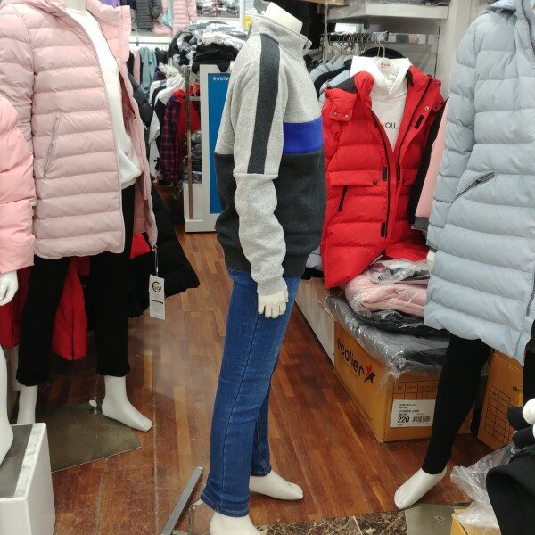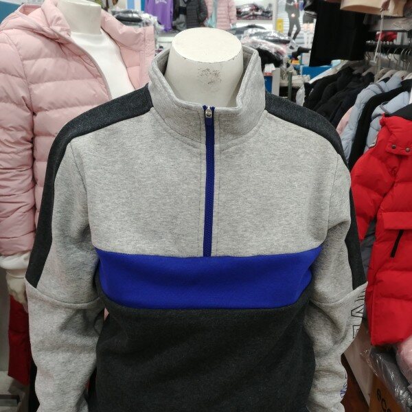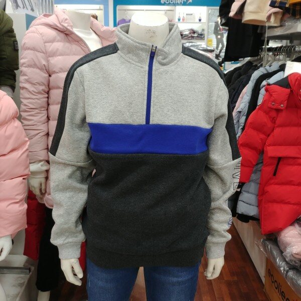 밍크 털이 잔잔히 묻히듯 있는 반목 집업 티셔츠입니다.그레이와 불루 칼라..챠콜 칼라의 조합이 너무 이쁩니다.