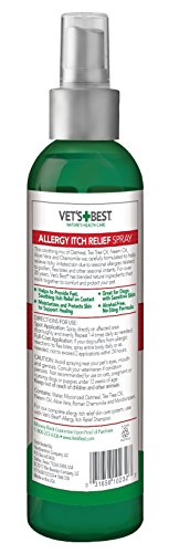 Provide your dog immediate relief to itchy, irritated skin with Vet's Best Allergy Itch Relief Dog Spray. Our soothing, veterinarian-formulated blend of natural ingredients (including oatmeal, tea tree oil, neem oil, aloe vera, and chamomile) work together to comfort and protect your pet from seasonal allergies related to pollen, flea bites, and other seasonal irritants. Formula is alcohol-free and non-stinging.