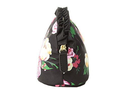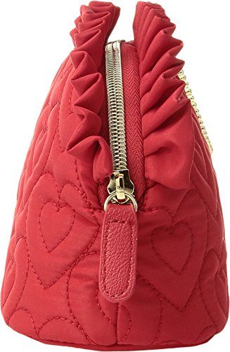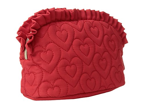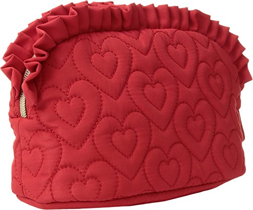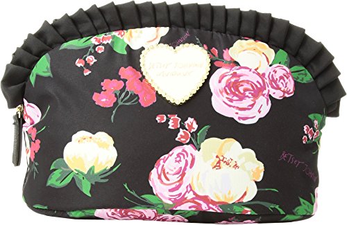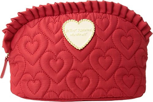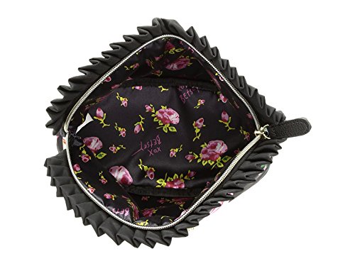 Product Description Betsey Johnson Wristlet Trapezoid. Quilted exterior. Zip top closure with Decorative Betsey Johnson signature zipper pull designs vary. See photos for more details. Detachable wristlet strap about 14 inches long. About 9 inches long by 6 inches tall and 3 inches wide. Interior fully lined in Betsey Johnson signature fabric. 0