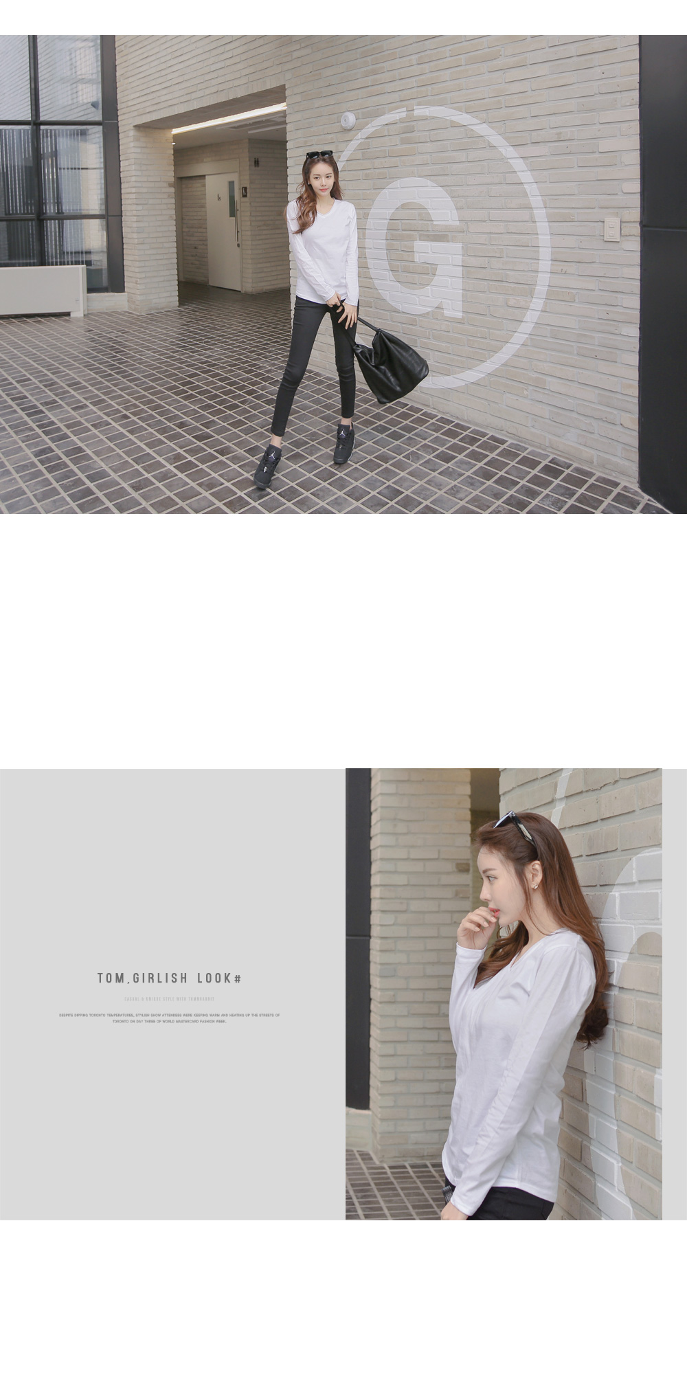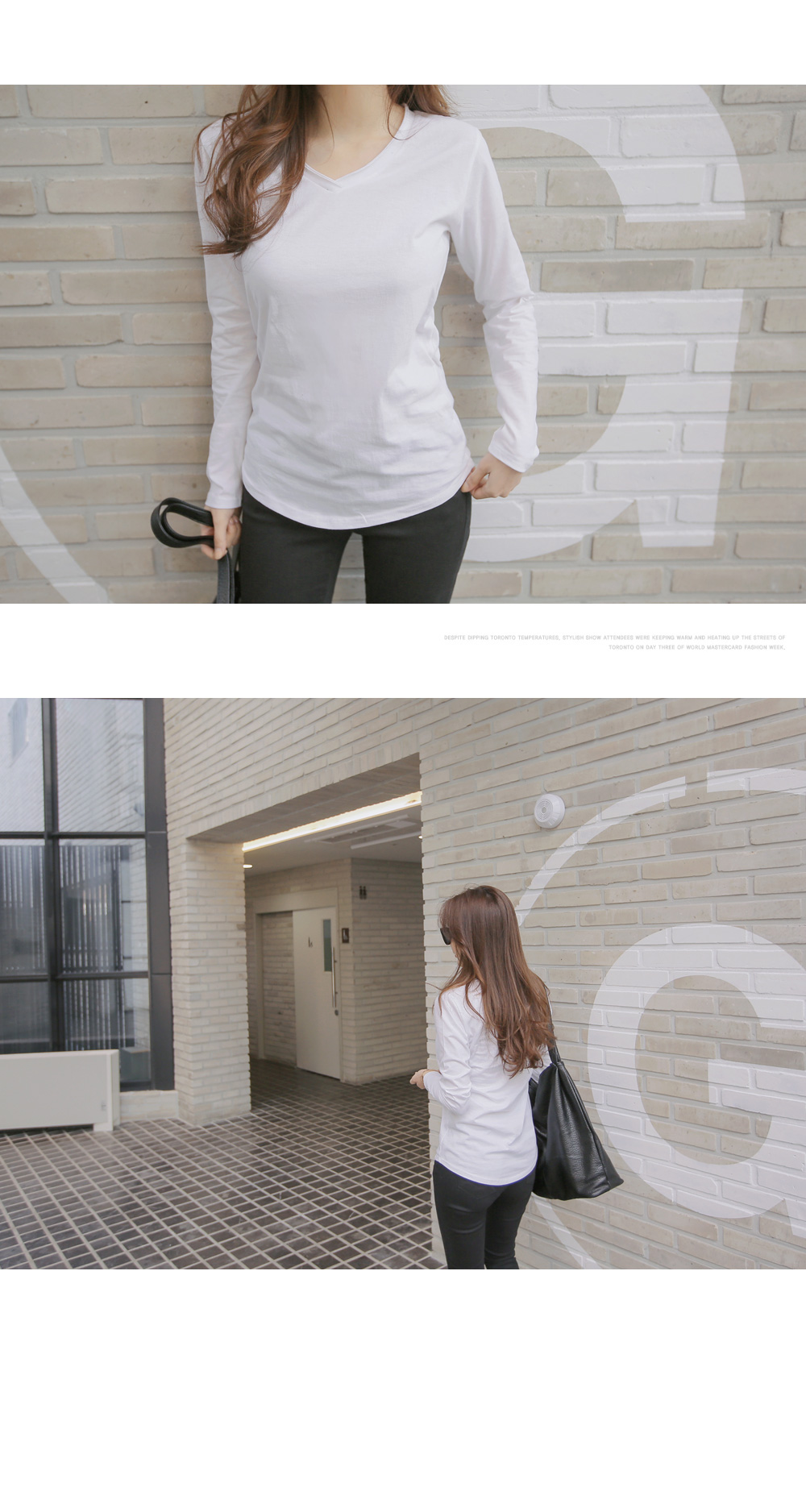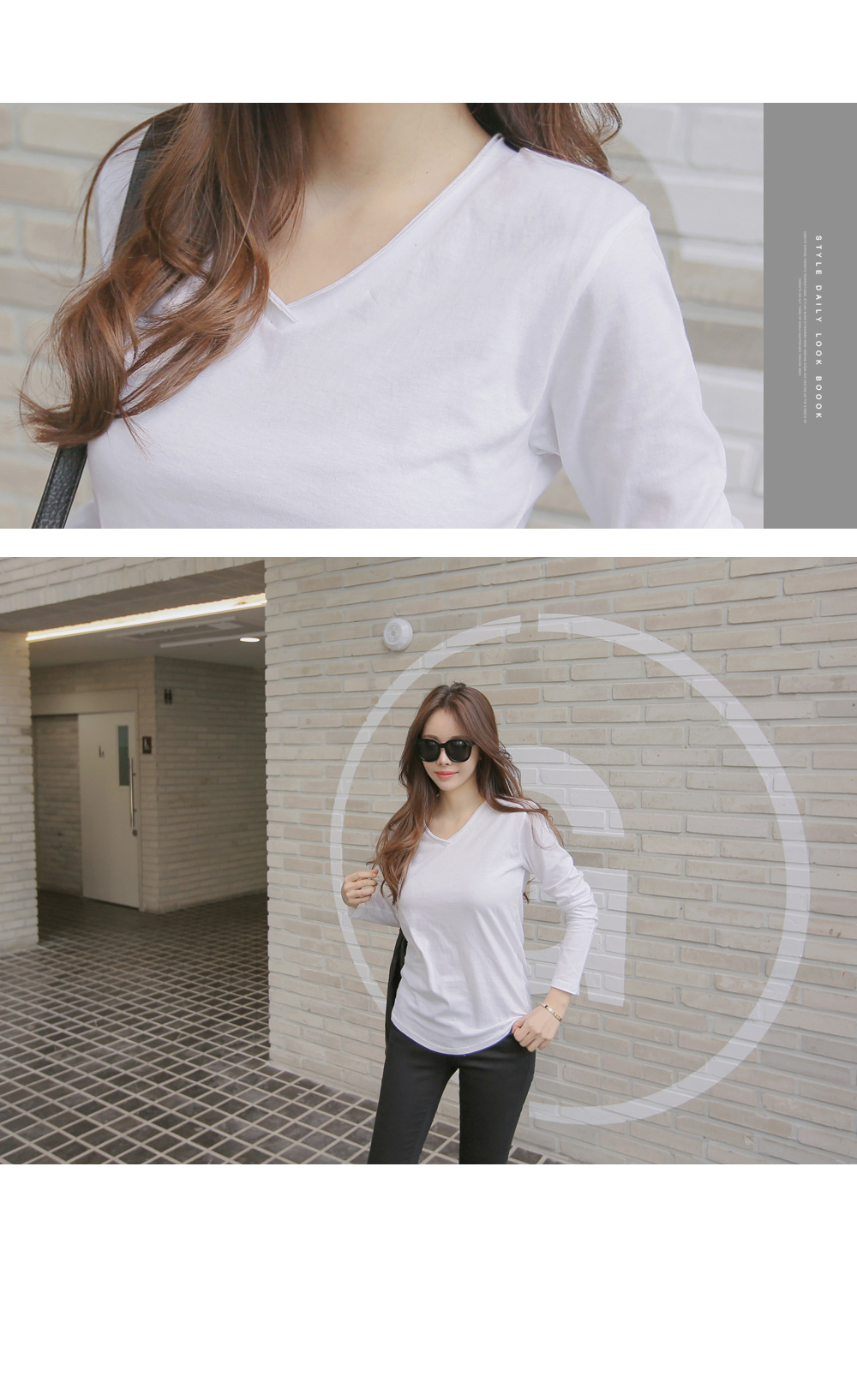 베이직한 무드의 긴팔 브이넥 티셔츠를 소개합니다 :)